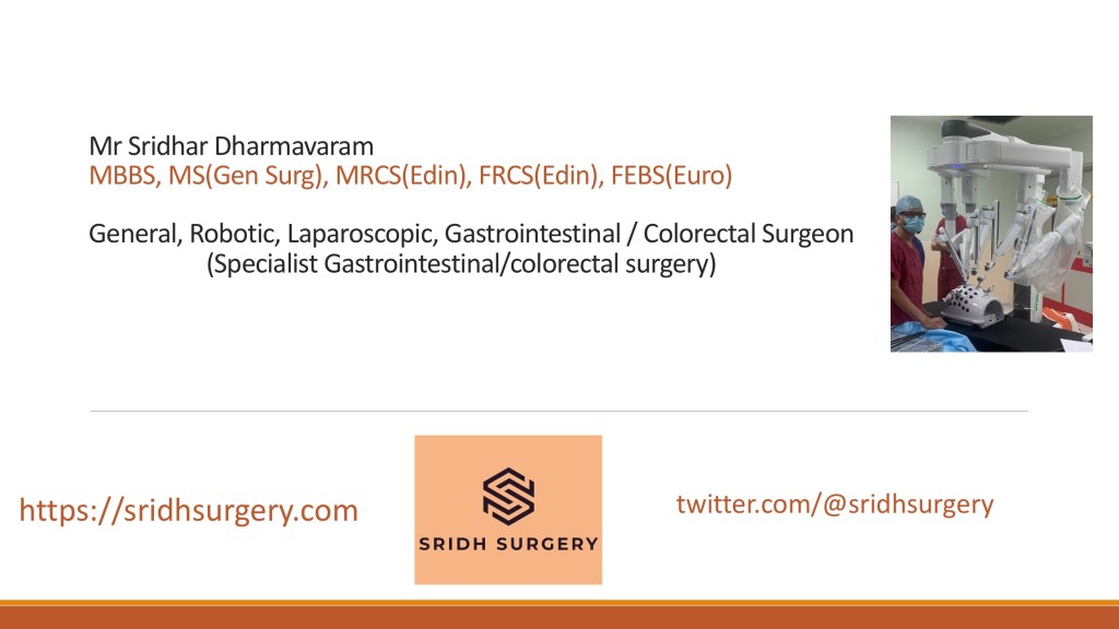 Educational talk ~ Colorectal Problems Posted bySridhar Dharmavaram9th Nov 20239th Nov 2023Posted inConferences Share this: Click to share on X (Opens in new window) X Click to share on Facebook (Opens in new window) Facebook Like Loading... Related Published by Sridhar Dharmavaram Consultant Gastrointestinal Surgeon View more posts